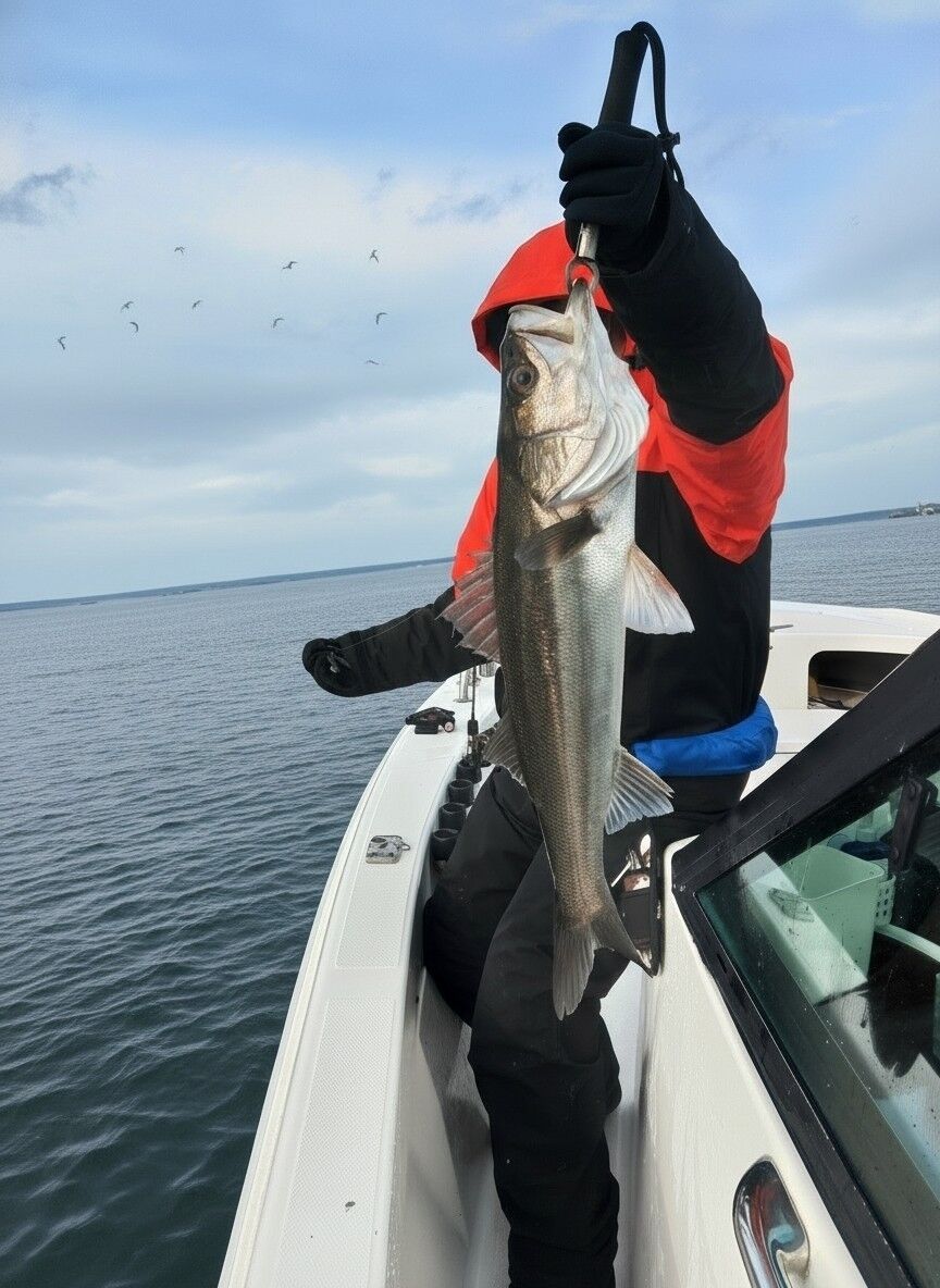 雪の中、2名様でのご乗船となり、寒さにも負けずに釣行を楽しんでいただきました。