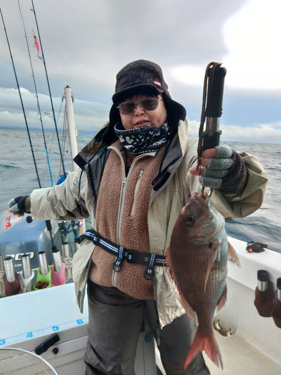 そのような状況の中、仕掛けを流す度に船中で1〜2ヒットはあったものの、船の揺れの影響か、バラシが多く、なかなか数を伸ばすことができず苦戦いたしました。